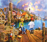 Алмазная вышивка «Мальчики рыбачат на пристани» 40x50 см