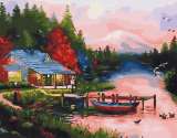 Картина по номерам «Вечер над рекой и лесной домик» 40x50 см
